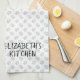 Blue And White Boston Terrier Cartoon Dog & Text Kitchen Towel