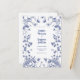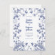 Our gentle monochrome blue and white wedding invitation in classic blue features floral, fauna, birds and butterflies. There is a mixture of sophisticated, modern typography, and flowing script calligraphy. Perfect for a garden or indoor event. This is a lovely invitation for weddings, birthdays and other events.
