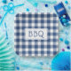 Get ready for your barbecue party with paper plates featuring a blue and white buffalo check plaid with the letters BBQ in a white rectangle in the center. You can change the text to a monogram or short word in the sidebar if you like.