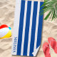 Blue And White Cabana Stripe Personalized Name Beach Towel