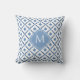 Blue and White Ceramic Pattern with Monogram Throw Pillow