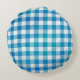 Blue and White Checkered Buffalo Plaid Round Pillow