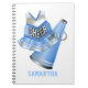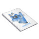 Cheerleader's notebook journal done in white, with graphics of a light blue and white cheerleader's dress and a matching megaphone. Light blue text, at the bottom, is fully customizable. Personalize the text to read what you want. Great for school or at home.