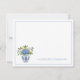 This note card features a beautiful blue and white chinoiserie vase with blue and white hydrangea flowers and lemons. Personalize with your choice of name or special text.