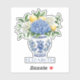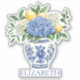 This cute vinyl sticker features a beautiful blue and white chinoiserie vase with blue and white hydrangea flowers and lemons. Personalize with your choice of name or special text. Fun for personalized gift bags and party favors.