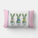 This Easter pillow features cute bunny rabbit green topiaries with pink, blue and yellow bows in blue and white chinoiserie flowerpots.