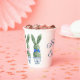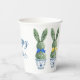 These Easter paper party cups feature cute bunny rabbit green topiaries with pink, blue and yellow bows in blue and white chinoiserie flowerpots. Personalize the holiday message with your choice of special text.