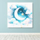 Blue and White Crescent Moon Celestial Boho Modern Canvas Print