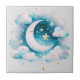 Blue and White Crescent Moon Celestial Boho Modern Ceramic Tile