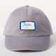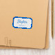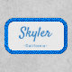 Simple custom name patches on color editable white background with blue border stitching, no minimum order quantity and no setup fee.