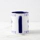 Blue and White Modern Christmas Tree and Gingerbread Man Pattern with custom text Merry Christmas in Elegant Script, you can change or delete the text, Winter Season Holiday Coffee Mug for kids of all ages