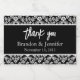 Chic wedding mini sparkling wine or wine labels ready for you to personalize with your own information. Elegant black and white damask pattern decorates the top and bottom of this black horizontal label. Personalize the text for your wedding reception. Great for your wedding reception table or guest favors.