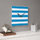 Bold wide blue and white deckchair stripes on home items to evoke memories of the seaside.