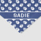 White dog paw print pattern on a blue background color together with a personalizable text area for a name or other custom text. This classic paw pattern bandana is perfect for creating some style and personality!