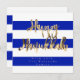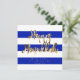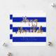 Happy Hanukkah Typography Elegant Script, Faux Gold Foil Text and Striped Pattern in Blue and White Israeli Flag Colors, Chic Modern Hanukkah Card