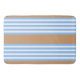 Blue and white five stripes pattern with tan bath mat