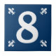 Blue and white fleur de lis home street address house number tile Personalized numbered wall tile with elegant typography. Cute gift idea for new home and house warming party. Customizable text and background colors. Navy blue and white wall sign home decor.