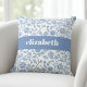 Blue and White Floral Botanical Custom Name Modern Throw Pillow