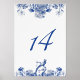 Blue and White Floral China Pattern Table Number Holder