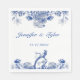 Create some personalized paper napkins that have the look of antique china. These napkins are ready to be personalized with the names of the bride and groom and their wedding date or with your own custom message. It has a blue and white floral and bird motif that's made to look like traditional china plates for party supplies with an elegant look.