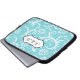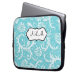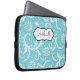 This stylish blue and white floral damask laptop sleeve has a text box for you to customize with your own name, initials, business name, or other text. If you need any help customizing, please email niteowlstudio@gmail.com.