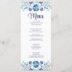 Blue and White Floral Fiesta Wedding Menu Card
