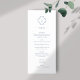 Chic with youthful elegance. This dusty blue and white wedding menu card exudes a fresh, modern and youthful tone. The front of the card includes a contemporary set of fonts in dusty blue and elegant floral couple monogram, against a crisp white background. Couple monogram is repeated at the back.