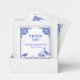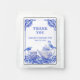 This Tea drink mix has a monochromatic design featuring a blue and white tea set surrounded by birds and flowers. The top has ornate corner decorations. You can edit the text to meet the needs of your event.