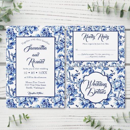 Blue and White Floral Toile Wedding ItemsDesigned by Lola F