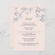 Delicate, unique and elegant, wedding details enclosure card framed by watercolor blue and white French toile with bird on tree branches.