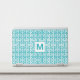 Bright blue and white geometric pattern monogrammed laptop skin.