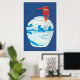 Print of handpainted Blue and white nature inspired ginger jar with red kingfisher bird on top on a blue background. This will look so pretty in your home or as a gift.