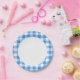 Blue And White Gingham Check Pattern Paper Plates