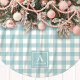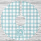 Blue And White Gingham Plaid Monogram Brushed Polyester Tree Skirt
