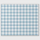 Light blue and white gingham pattern wrapping paper in a large scale. Appropriate to decorate gifts for different occasions.