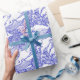 Modern blue humpback whales with waves and clouds wrapping paper by Jo Story of Sketchbook Designs. Elevate your gift-giving with this timeless and whimsical pattern that brings the soothing vibes of the sea. Perfect for adding a touch of beach elegance to any occasion.