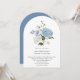 Celebrate love with this beautifully illustrated wedding invitation, featuring a single bouquet of blue and white hydrangeas with a sweet white rose and matching greenery. The airy botanical design is complemented by classic serif fonts, creating a timeless and romantic aesthetic. Perfect for vineyard weddings or spring celebrations, this invitation sets a graceful tone with its clean layout and fresh floral palette. Easy to personalize with your own information.