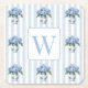 Blue and White Hydrangeas on Stripes Monogram Square Paper Coaster