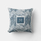 Elegant modern tropical leaf pattern in slate blue and white print throw pillows accented with your monogrammed. Choose from 3 sizes. Matching duvet cover and other items in our store.