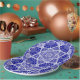 This is my Loergann mandala design in white over a Sapphire background. Sapphire is a deep, royal blue shade and gives a bold contrast to the design.