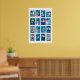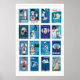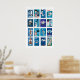 Blue and White Matchbox Label Collage, clean Poster