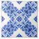 A blue and white mediterranean patterned ceramic tile. Great for decorating projects, kitchen backsplash, and more.