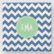Blue And White Monogram Chevron Geometric Pattern Stone Coaster