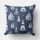 Blue and White Nautical Lighthouse Throw Pillow