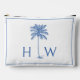 Blue and White Palm Palmetto Tree Monogram Accessory Pouch