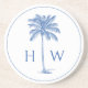 Blue and White Palm Palmetto Tree Monogram Coaster