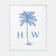 Blue and White Palm Palmetto Tree Monogram Fleece Blanket