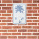 This coastal inspired monogrammed metal parking sign features a classic palm palmetto tree in blue on a white background. Personalize the monogram with your choice of initials.