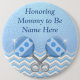 Blue and White Personalized Mommy to Be Button Pins. Type in YOUR TEXT along with Mommy to Be NAME or Delete any or all text. Adorable baby blue baby shower ideas to honor mommy to be. I can make color changes to the baby blue background, baby rattles, chevron design and text COLORS.