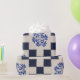 Quilt design of checkerboard blocks and a feathery Delftware-like design, 2008, from the Smithsonian’s Anacostia Community Museum, gift of Ira Blount.